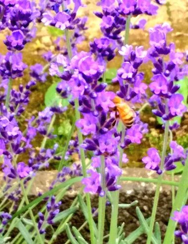 岩木山の雪もあと少しになりました。紫色のラベンダーが綺麗に咲きました。蜜集めのミツバチが忙しそうに働いていました!