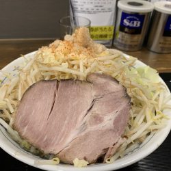 写真は大盛、やさい、あぶらマシ、にんにく少なめです。