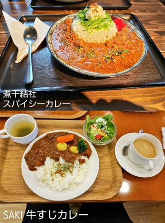 煮干結社のスパイシーカレーとSAKIの牛すじカレーです。私は、スパイシーカレーの方が美味しかったです。