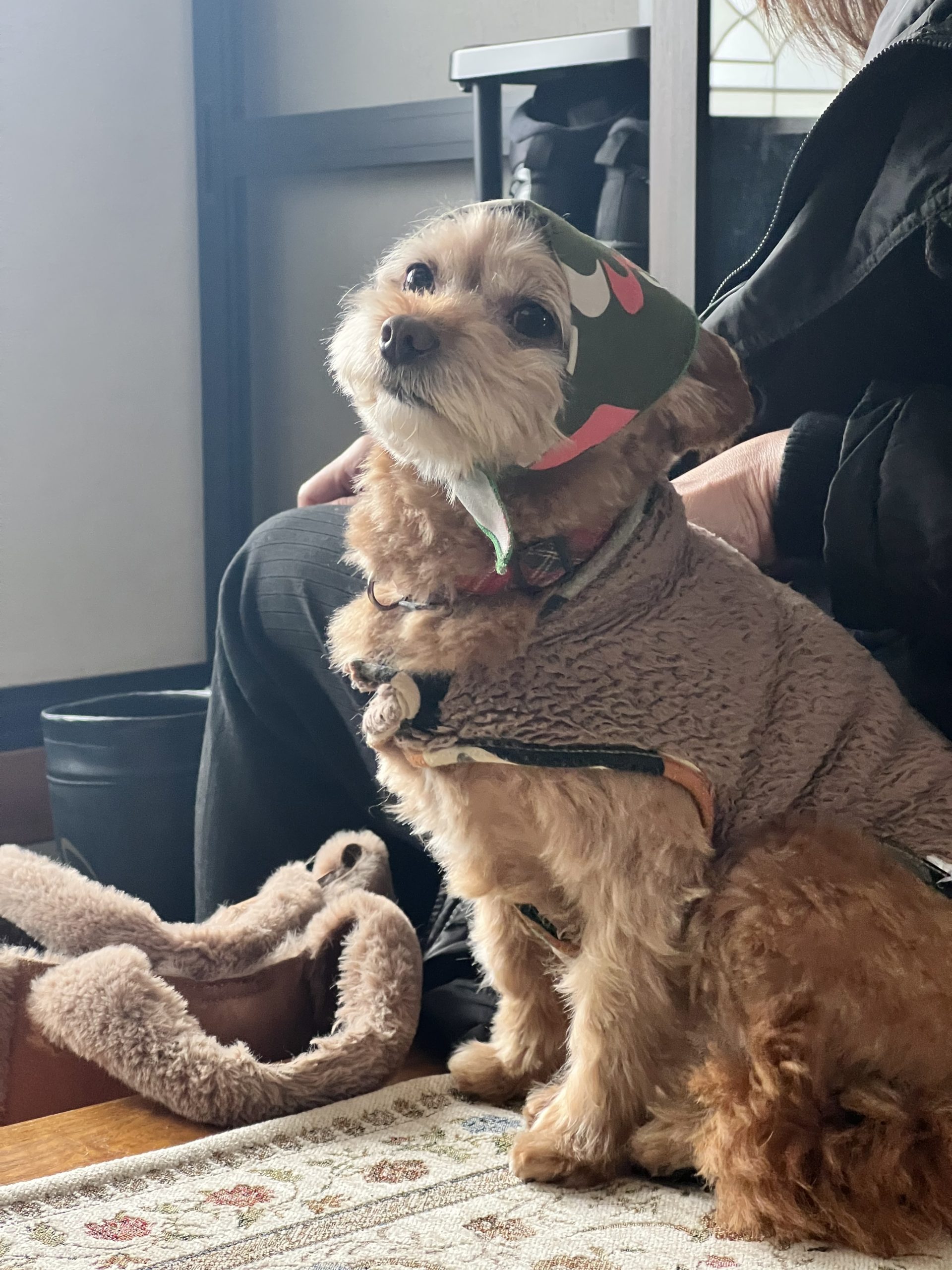 お店で付けて来たバンダナをいたずらで頭に付けたらこのどや顔。